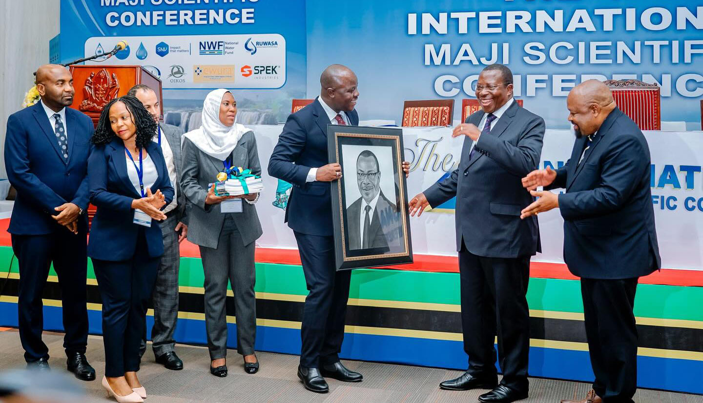 Hon. Jumaa Aweso (MP), Minister for Water, receiving an award at the 4th International Maji Scientific Conference.
